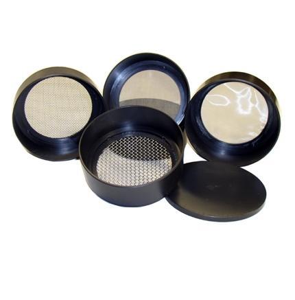 This sieve set lets students separate and grade soil and rock samples in order to determine the makeup of the soil strata. Each set stacks together and includes bottom pan and lid with Teacher’s Guide. 6-3/4" x 3" with wire mesh bottom.