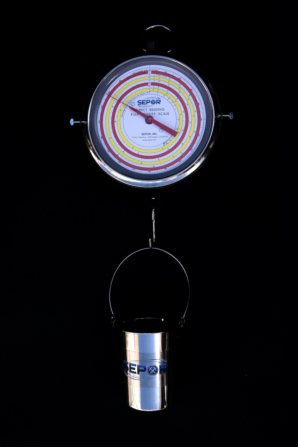 Sepor. Pulp density and specific gravity scale for direct reading, metric weight of samples; specific gravity of liquids; specific gravity of pulp; specific gravity of dry solids; and per cent solids. Highly sensitive and accurate scale, easy to operate, direct reading with no need to weigh samples separately, nor refer to charts and tables nor make any calculations. Twelve separate interchangeable dials provide a wide range of specific gravity determinations in small increments from 1.2 to 7.8. The transparent dial cover eliminates the possibility of dirt affecting the scale accuracy or the ability to read.