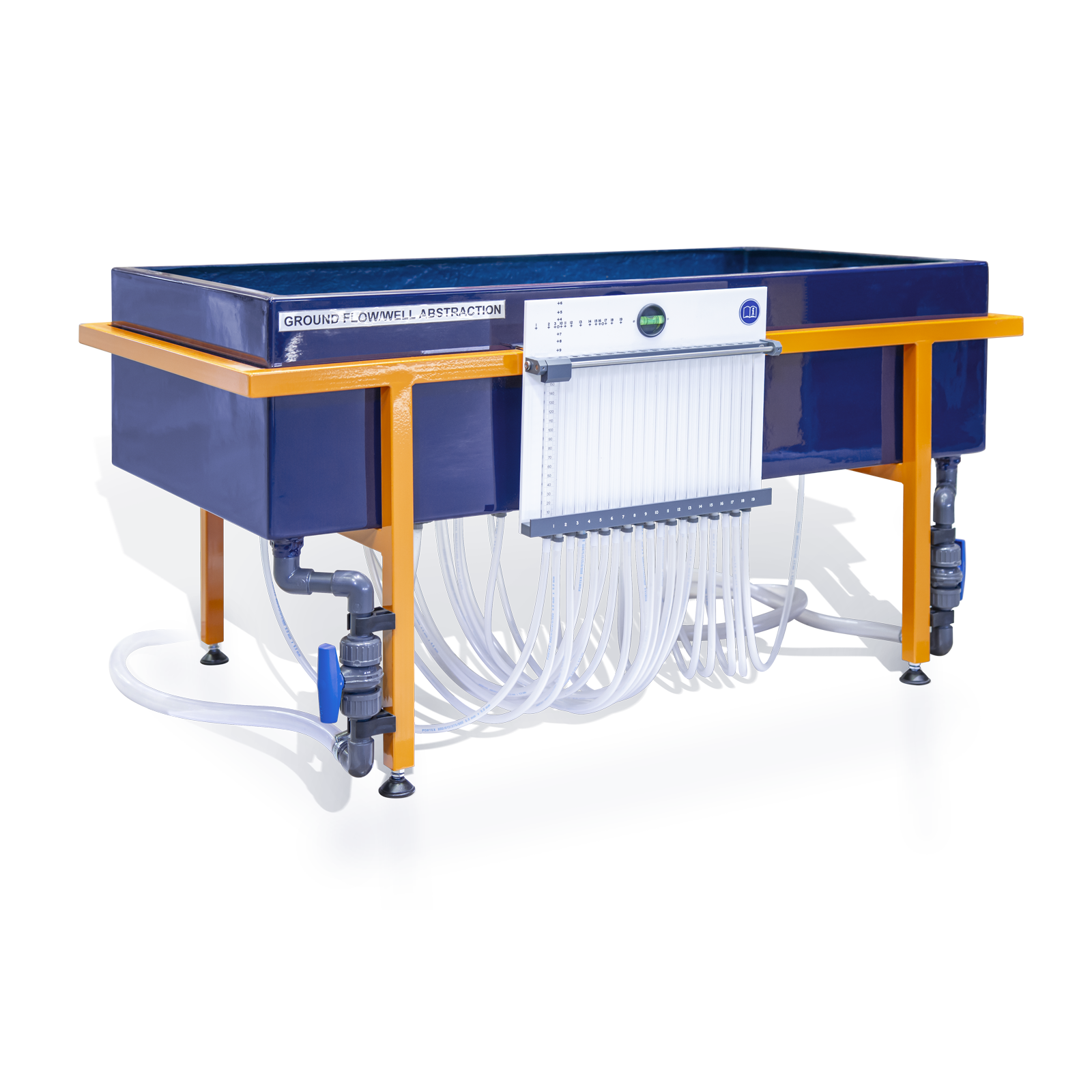 The Armfield Ground Water Flow Unit allows simple three dimensional flow situations to be set up quickly and measurements of piezometric levels taken at appropriate positions within the model.