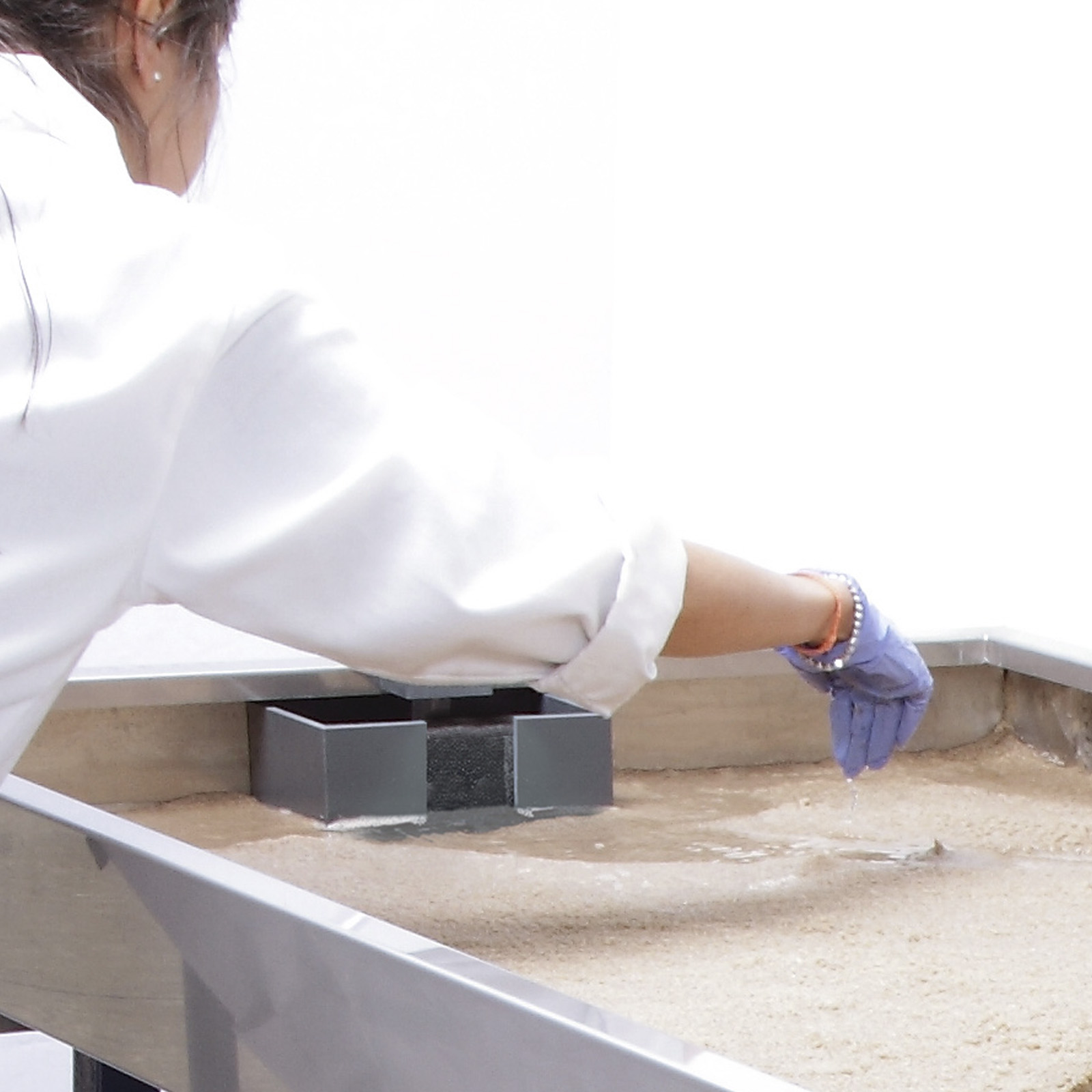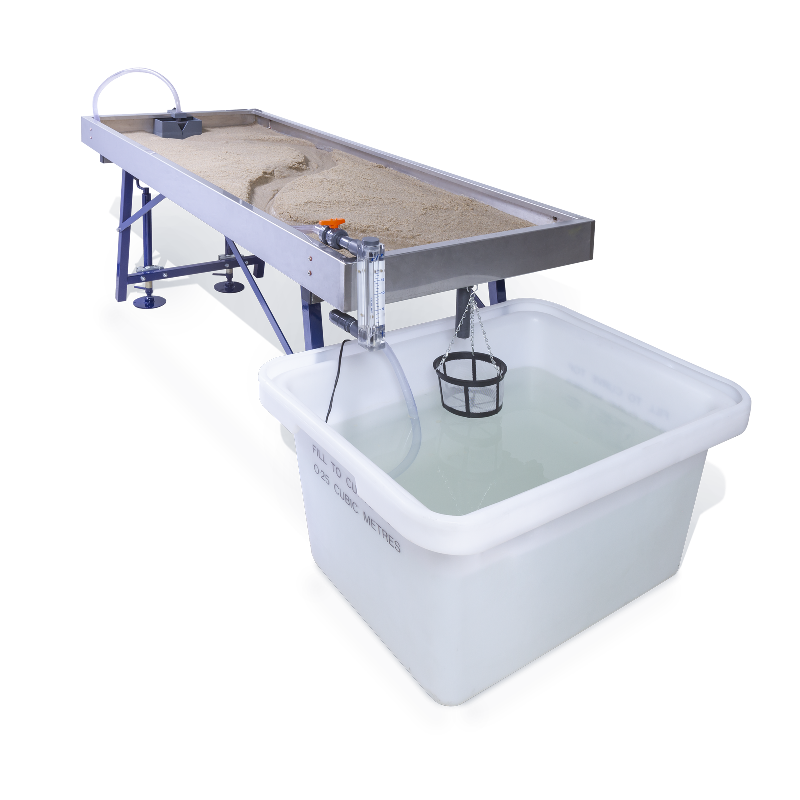 The sturdy construction enables real sand to be used in the tank. This gives fine detailed and realistic feature simulation not obtainable on systems which use plastic pellets. In this way all principles of river formation and bed load motion can be studied. For best results the use of washed and graded sand is recommended.