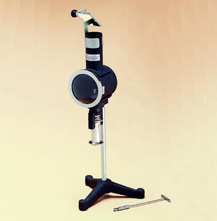 Burns fuel samples under controlled conditions for smoke point determinations of aviation turbine fuels and similar products. Consists of brass lamp body with chimney; gallery; 0-50mm black glass scale with white markings; brass plated door with curved glass window; candle socket; and plated brass candle with wick tube and air vent. Mounted on a cast […]