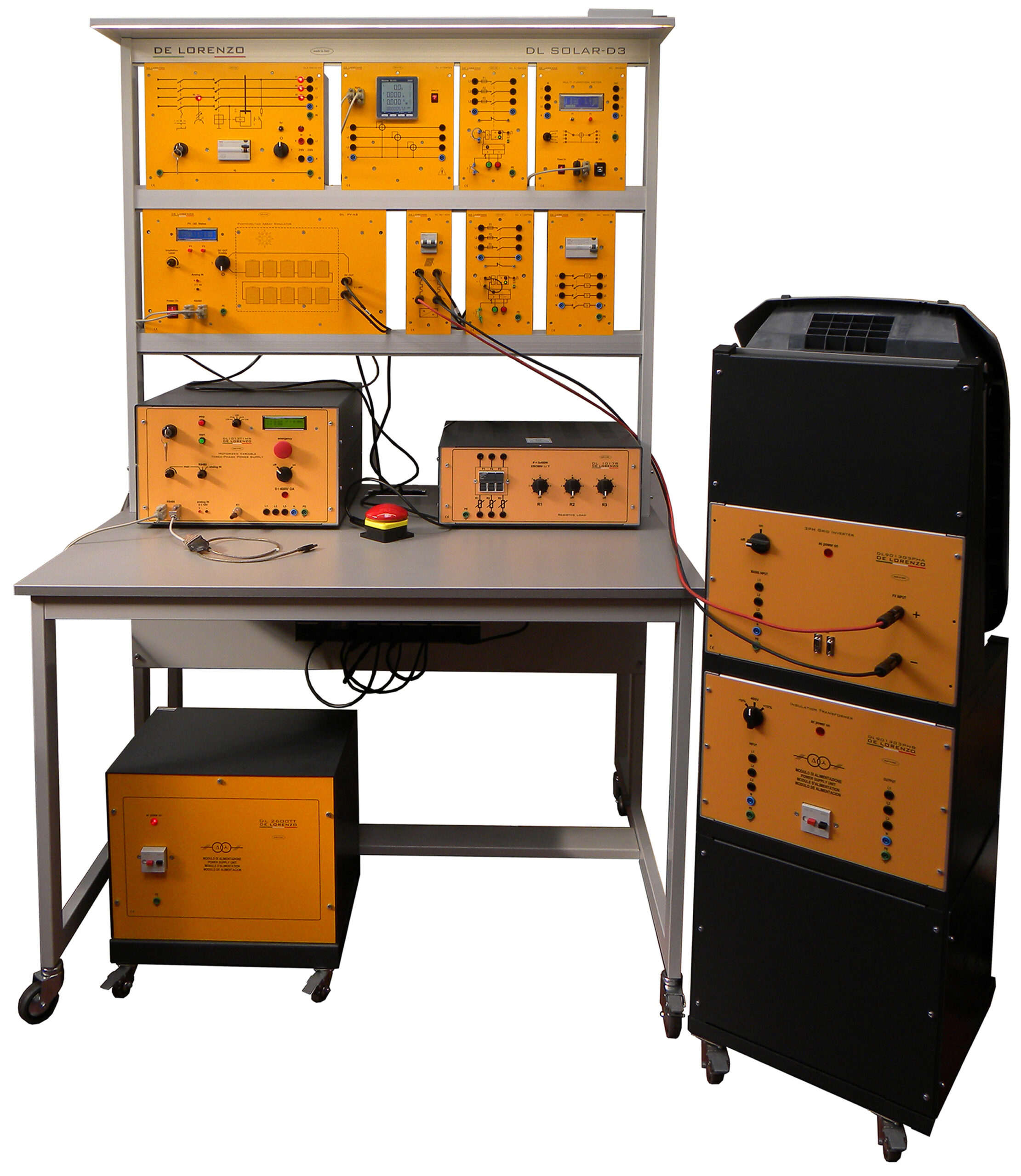 Modular didactic system for the study of a photovoltaic power system and the operation of a three-phase solar inverter connected to the power grid.
