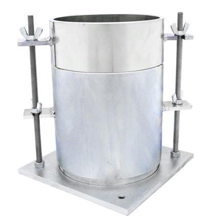 The Standard Compaction Mold consists of the 1/30 cu. ft. cylinder mold, collar, base plate and studs complete with wing nuts.The base plate is slightly recessed to receive the cylinder mold.