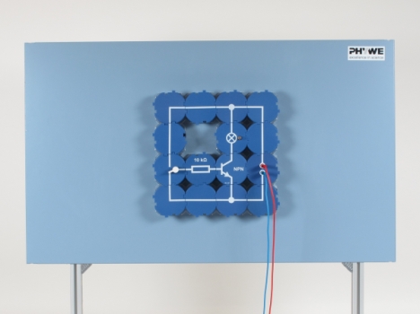 A demonstration is to show that a current can only flow from the emitter to the collector of a npn-transistor when the base is connected to the positive terminal of a direct current source, so that the blocking effect of the base-emitter barrier layer is overcome.