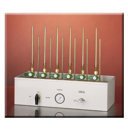 Cleans and dries glass capillary viscometers using solvent and pressurized filtered air. Use for all types of kinematic viscometers. Cleans as many as six tubes at a time. Place tubes on solvent/air jets and open the valve for each jet. Turn selector dial to ‘solvent’ to rinse tubes, and then to ‘air’ to evaporate any […]