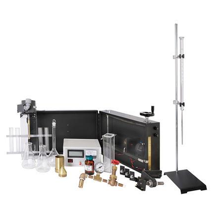 Determines fineness of Portland cement, using photoelectric cell to measure light passing through suspended pulverized material. Microamp meter measures current generated in the cell; indicated reading is measure of turbidity of the suspension. Includes photoelectric cell {and light source in metal cabinet, timing burette and stand, wet sieving assembly including gauge and spray nozzle, microamp meter, 3 flasks, 4 test tubes, stirring apparatus and instruction book. Battery not included.