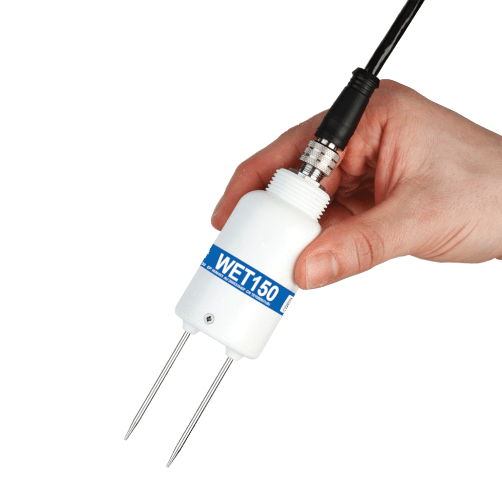 The rugged watertight build of the WET150 also makes it ideal for use in field research and outdoor farming – sensors can be left buried over very long periods of time without loss of performance. WET150 sensors can also be buried at different depths to enable monitoring of soil moisture, temperature and EC profiles.