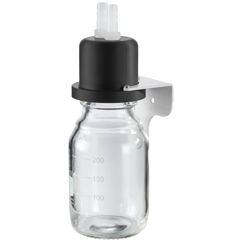 For separating condensate to protect the valves of the vacuum pump, standard vacuum laboratory bottles can be used. Screw connection for easy emptying and cleaning, compatible with all Hei-VAP configurations, volume of 200 ml